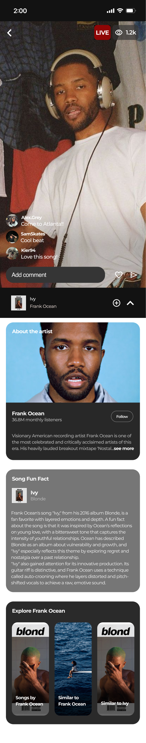 I moved the "Add to Playlist" button to the bottom and added a scroll-down option for more artist info, fun facts, and similar songs.